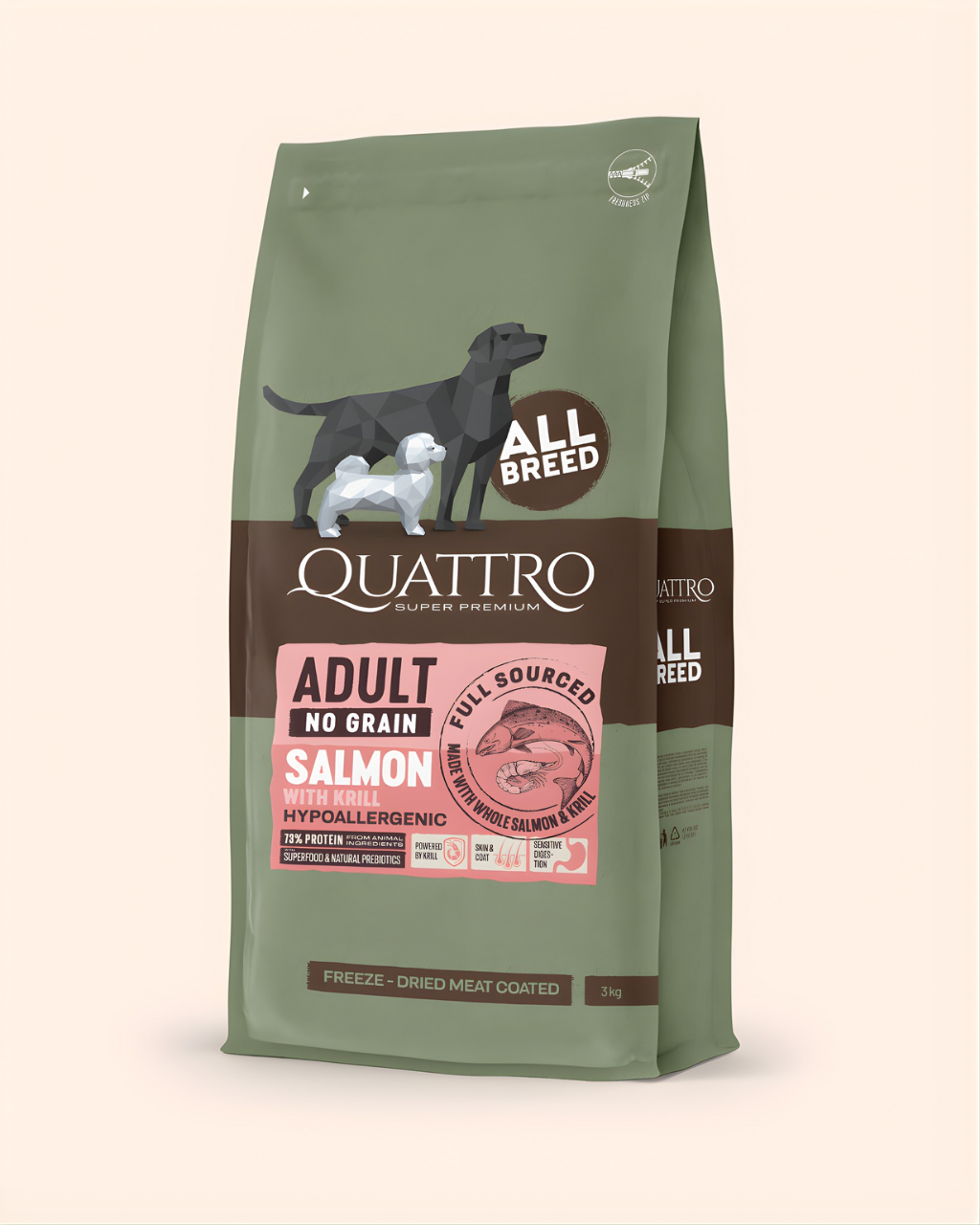 Quattro Super Premium No Grain All Breed Adult, Salmon & Krill 3kg