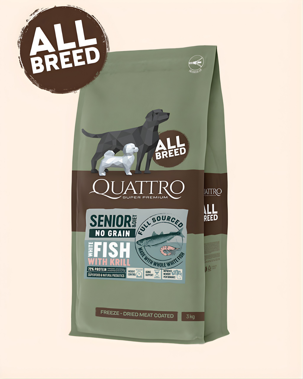 Quattro Super Premium No Grain All Breed Senior/diet, White Fish & Krill 3kg