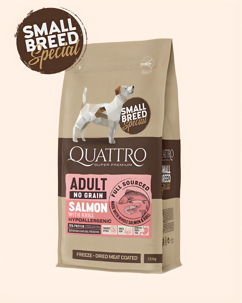 Quattro Super Premium No Grain Small Breed Adult, Salmon & Krill 1,5kg