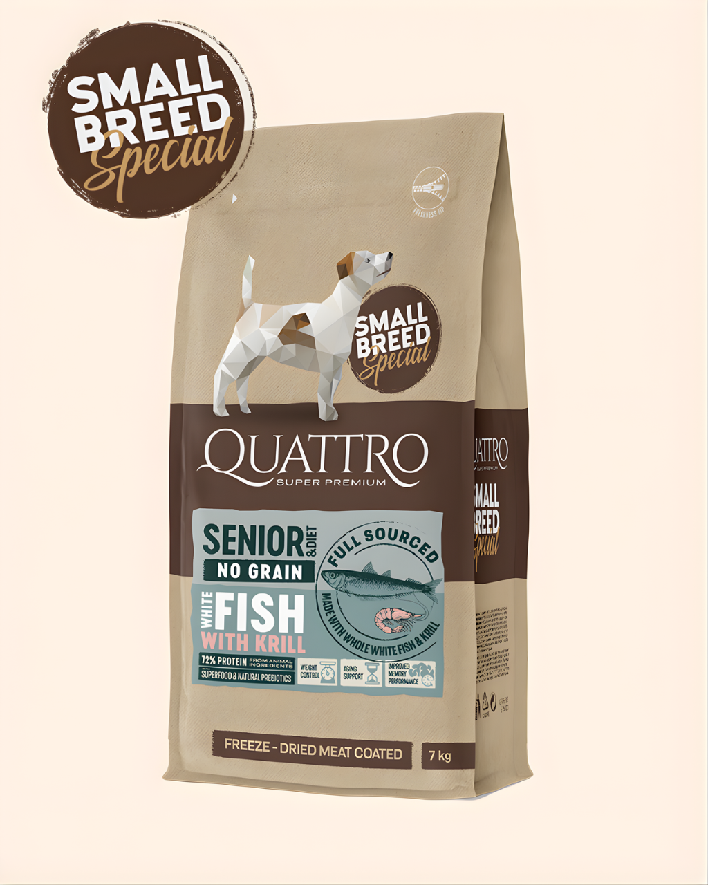Quattro Super Premium No Grain Small Breed Senior/diet, White Fish & Krill 7kg