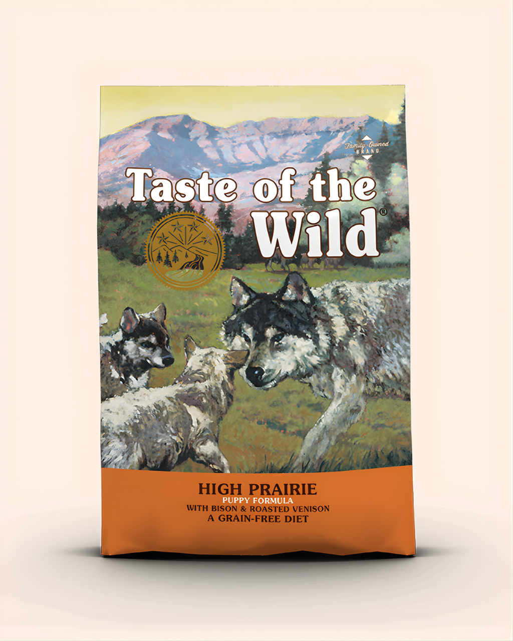 High Prairie Puppy från Taste of the Wild är ett näringsrikt foder framtaget speciellt för valpar. Det är tillagat med kött och en blandning av flera proteinkällor som ger en fyllig och kraftfull smak av det vilda – en smak som din valp kommer att älska.