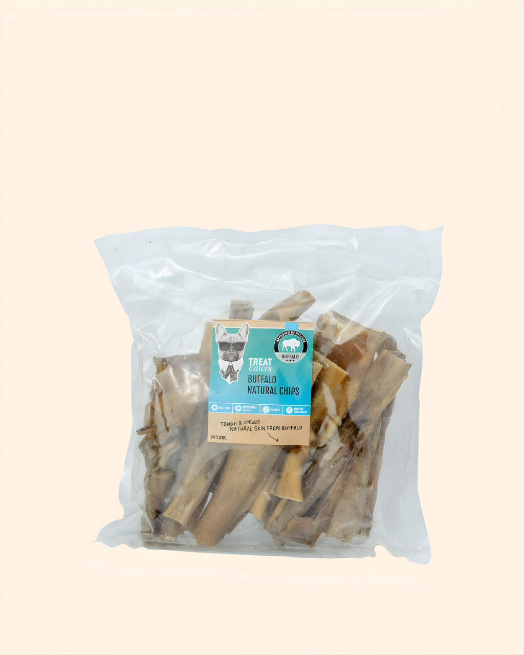 Chips tillverkade av råhud från buffel – ett tåligt, naturligt och långvarigt tugg som passar de flesta hundar. Dessa buffelchips ger hunden möjlighet att tillfredsställa sitt tuggbehov samtidigt som de hjälper till att främja god munhälsa genom att minska plack och tandsten.
