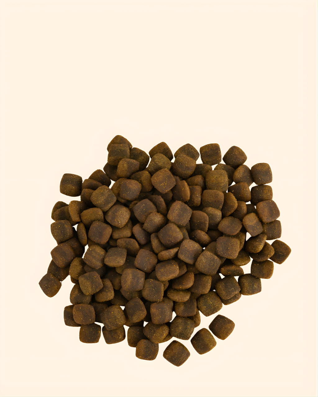 Lammkött 24%, fullkornsris, fullkornsmajs, fjäderfäfett, majsgluten, fullkornskorn, torkad betmassa, hydrolyserat animaliskt protein, öljäst, linfrön, frystorkad kyckling, mononatriumfosfat, inulin, kaliumklorid, mannano-oligosackarider (200 mg/kg), yuccaextrakt (100 mg/kg).