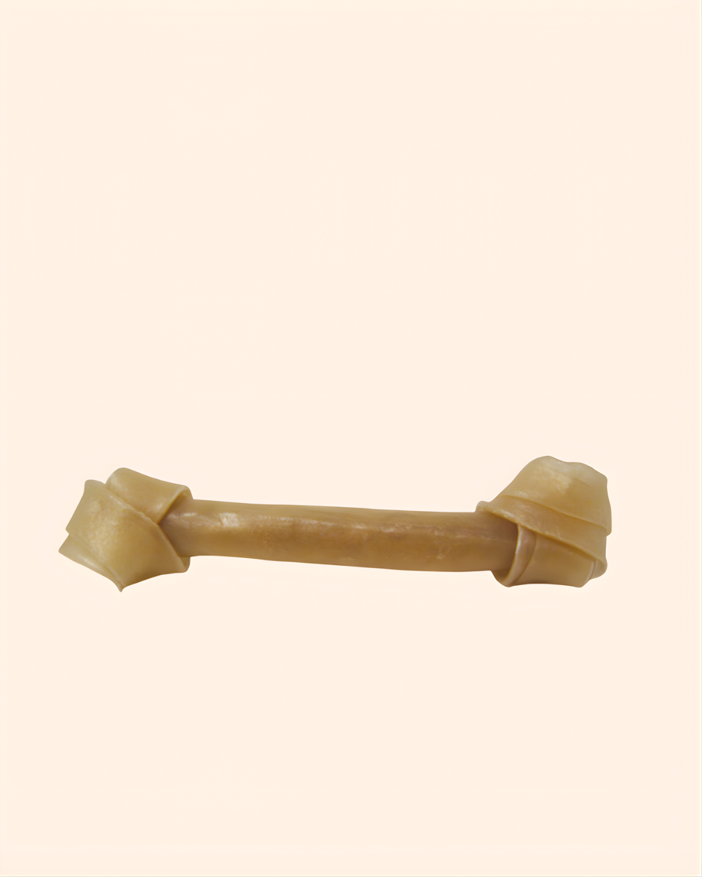 Knutben i olika storlekar av naturell råhud – ett klassiskt tuggben som håller hunden sysselsatt och belönar den på ett naturligt sätt. Tillverkat av 100 % torkad nöthud och helt utan tillsatser, vilket gör det både säkert och skonsamt.