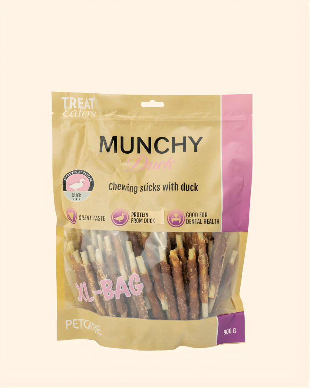 Sammansättning: Ankbröstfilé, ris, majsstärkelse, sorbitol, vegetabiliskt protein, glycerol, salt