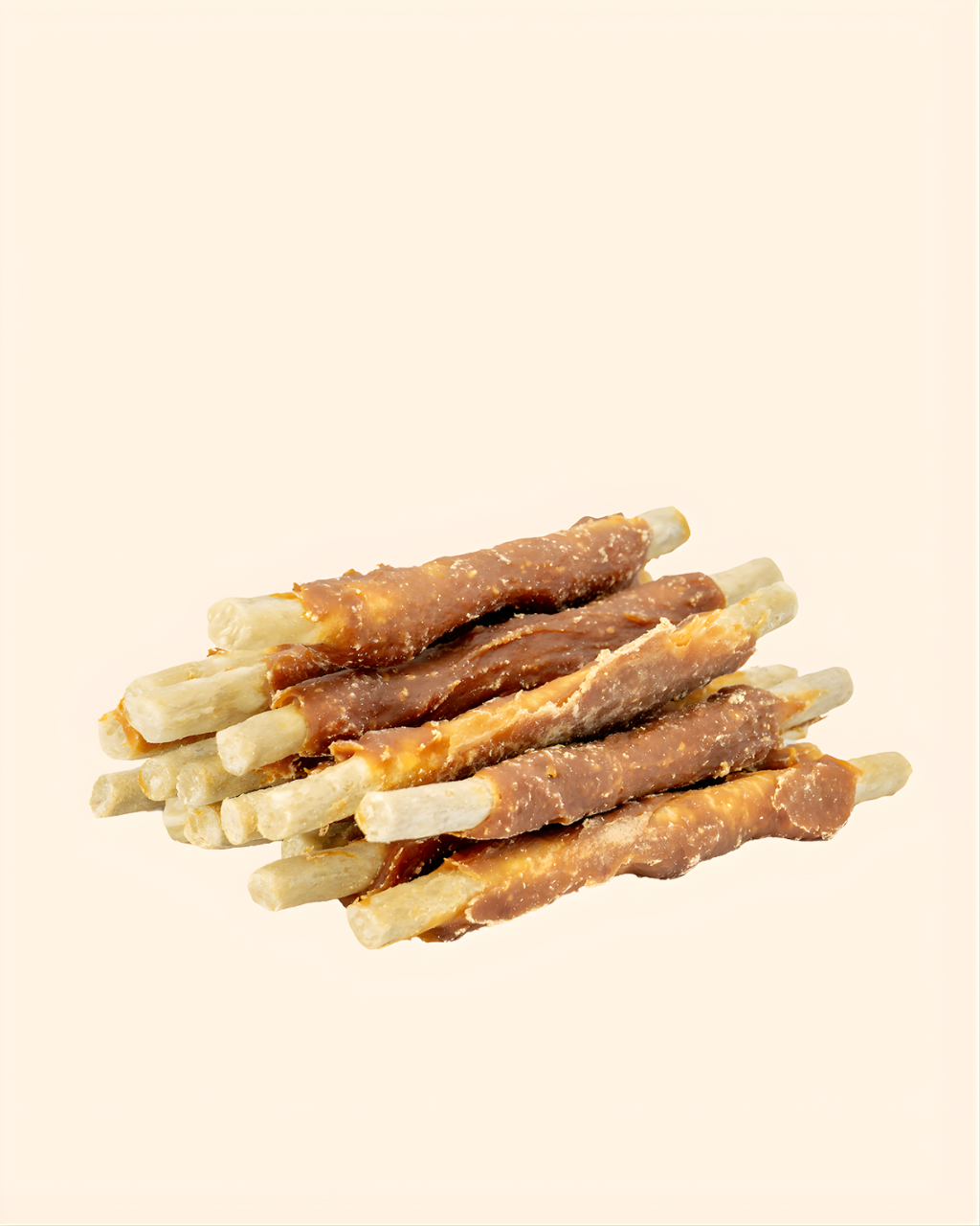 Smakrikt tuggben tillverkat av mald, pressad råhud med ris i mitten och twistad med ankbröstfilé. Bidrar till god munhälsa och ger en långvarig tuggupplevelse som hunden älskar.