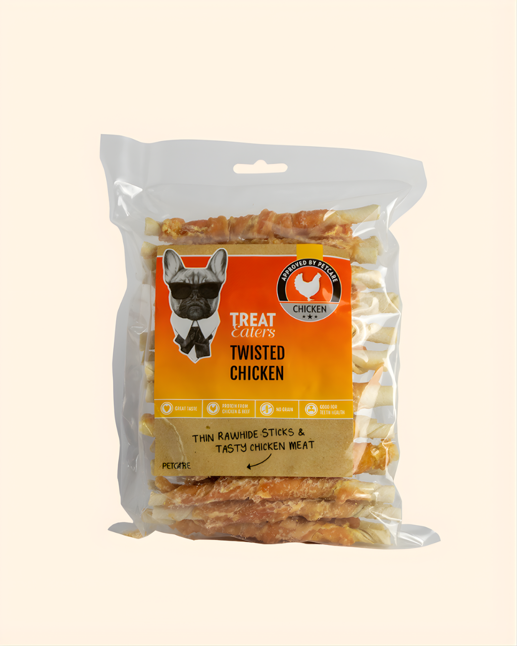 Tvistade tuggpinnar med råhud och torkad kyckling