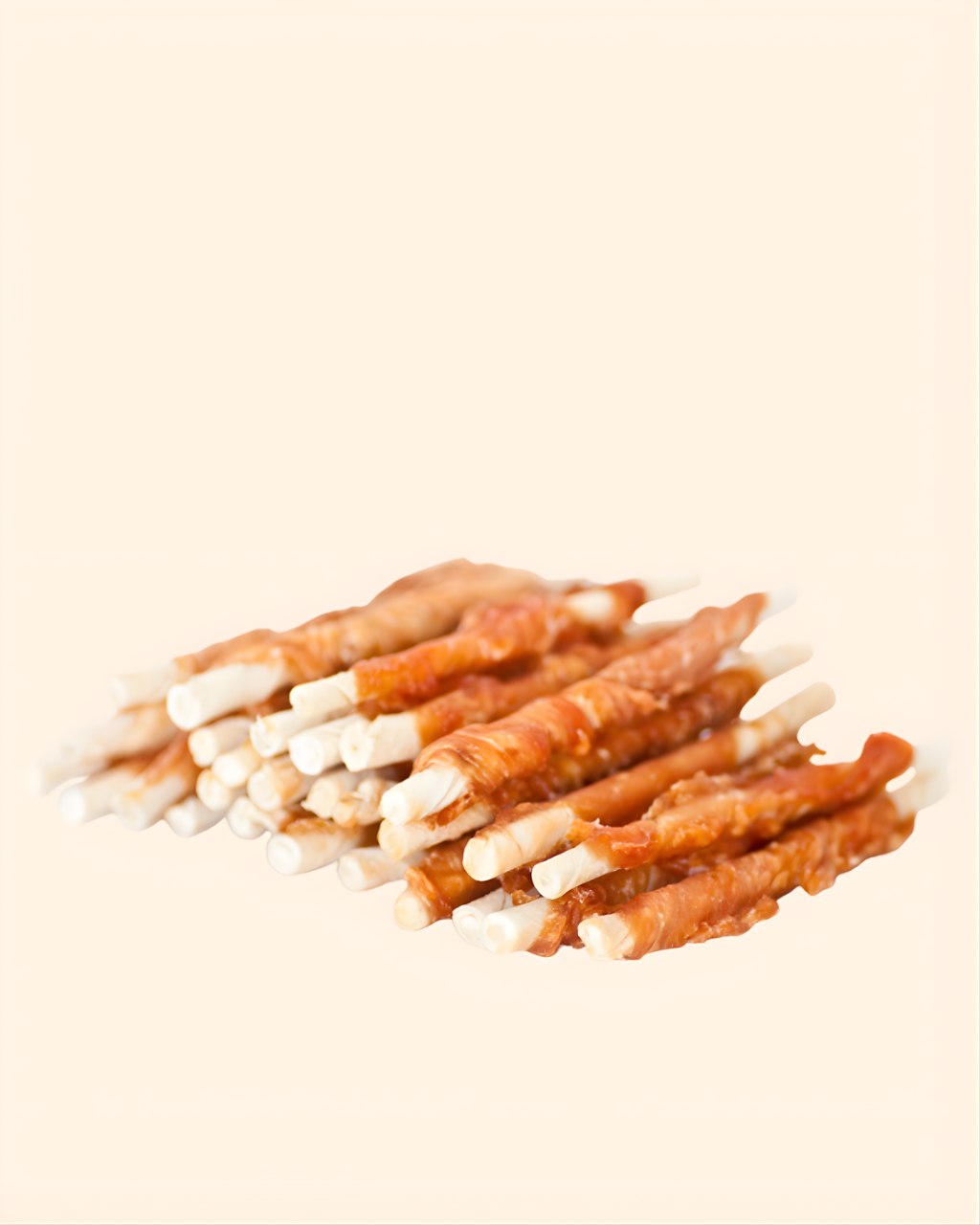 Våra populära kycklingtugg är en riktig favorit hos hundar i alla storlekar. De tvistade pinnarna består av råhud lindad med smakrik kycklingbröstfilé av högsta kvalitet och finns i flera olika förpackningsstorlekar.