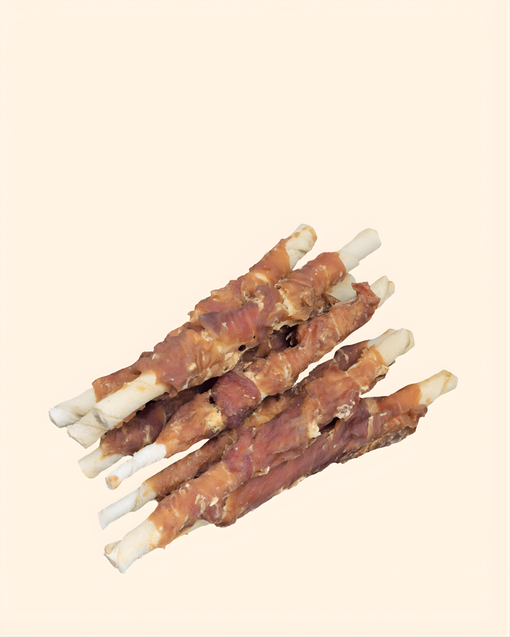 EN: Dried rawhide strips (rawhide) 53 %, dried lamb meat 47 %